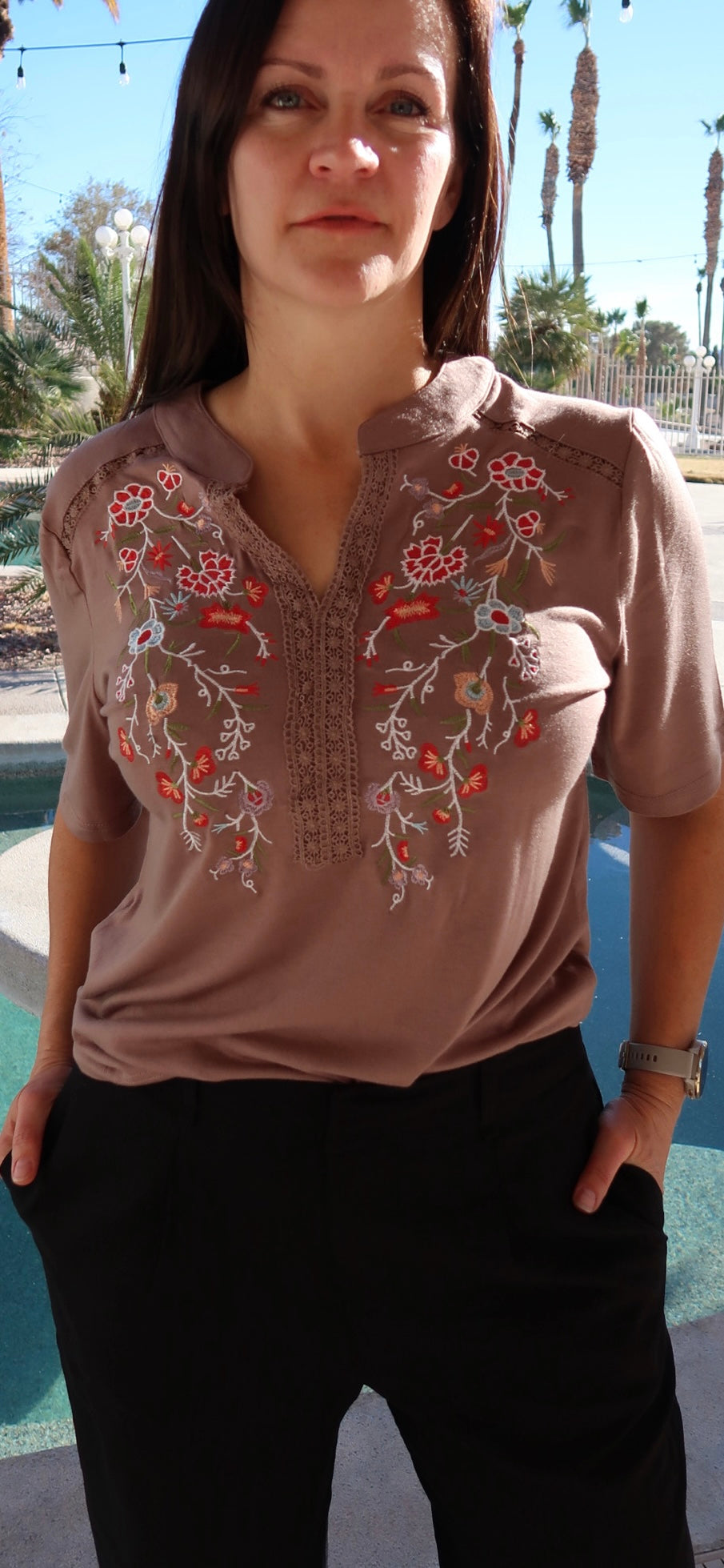 Indulge in effortless elegance with our Embroidered Short Sleeve Knit Top. Crafted with a sophisticated v-neck design, this top exudes luxury and will elevate any outfit. Adorned with delicate embroidery, it adds a touch of elegance and exclusivity. Made with premium materials, it offers a comfortable and stylish experience.